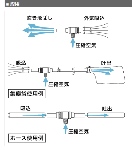吸(吸)可以从喷嘴的尖端用空气吸入各种东西。如果在背面装上防尘袋,它就变成了一个简单的吸尘器。NW501和YW501系列很方便。输送可通过在两侧安装软管进行运输。NW501系列很方便。