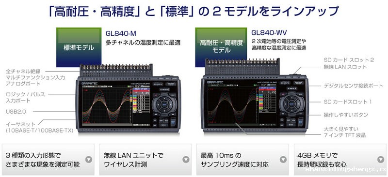 日本图技全新推出GL820记录仪的升级产品GL840系列,日本图技存储记录仪GL840分为两个型号分别是GL840-M和GL840-WV。两个型号的主要区别是输入电压和测试精度不一样。详情可咨询上海增骏。全新GL840记录仪测试电压范围更大,全部可以直接连接GL100的传感器,存储采用外接SD卡存储,最大可支持32G。存储记录仪GL840全部支持无线通讯,可以直接和GL100进行无线通讯。GL840显示屏幕增加到7英寸。