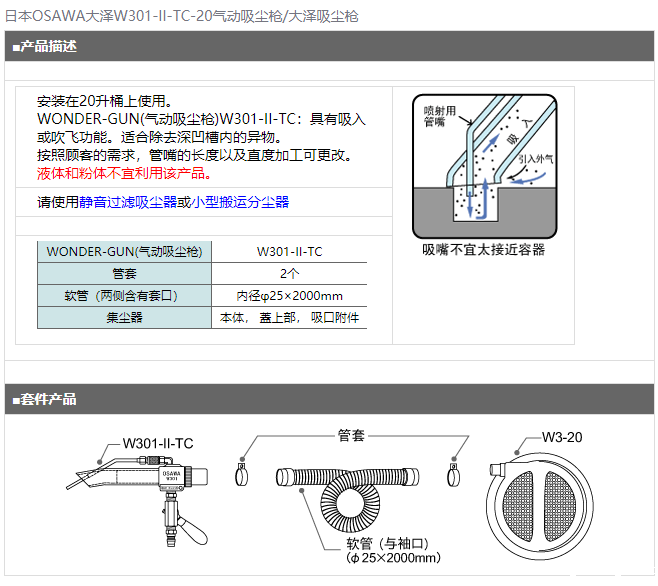 > 日本OSAWA大泽W301-II-TC-20气动吸尘枪