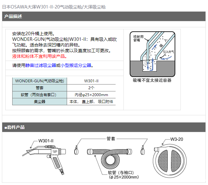 > 日本OSAWA大泽W301-II-20气动吸尘枪