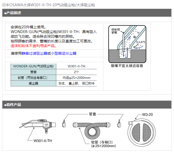 > 日本OSAWA大泽W301-II-TH-20气动吸尘枪