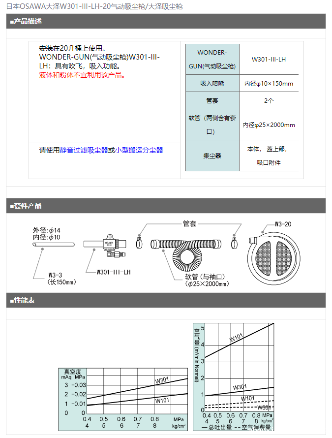 > 日本OSAWA大泽W301-III-LH-20气动吸尘枪