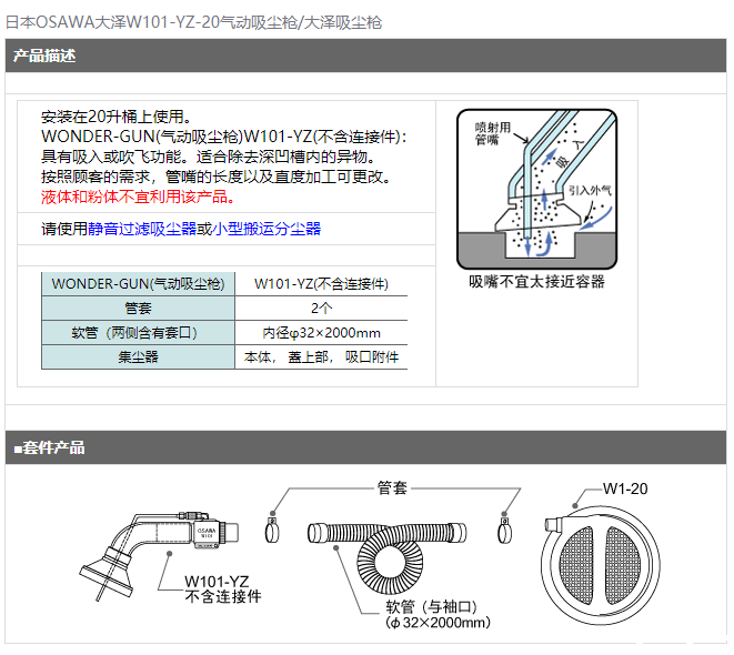 > 日本OSAWA大泽W101-YZ-20气动吸尘枪