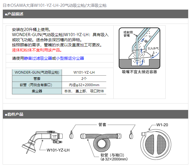 > 日本OSAWA大泽W101-YZ-LH-20气动吸尘枪