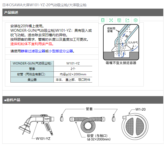 > 日本OSAWA大泽W101-YZ-20气动吸尘枪