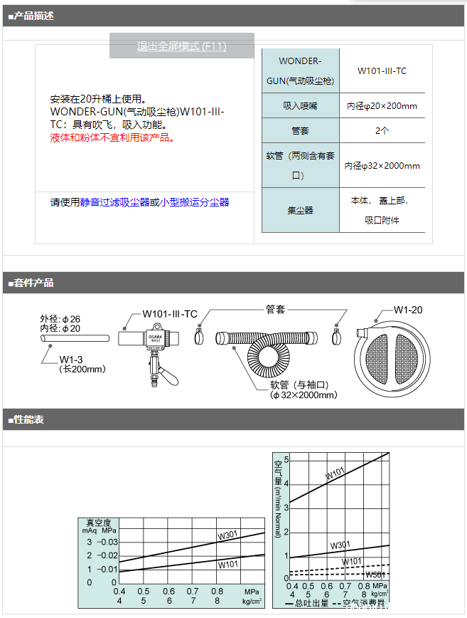 > 日本OSAWA大泽W101-III-TC-20气动吸尘枪