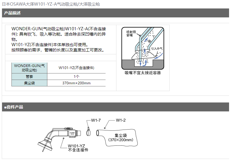 > 日本OSAWA大泽W101-YZ-A气动吸尘枪