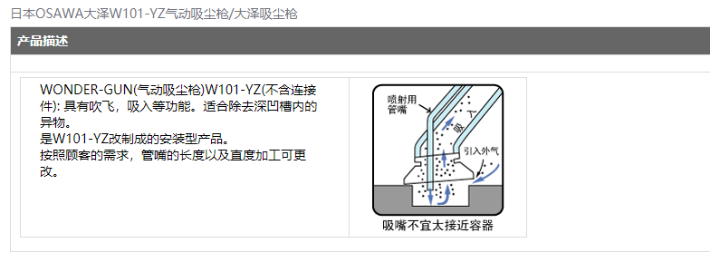 > 日本OSAWA大泽W101-YZ气动吸尘枪