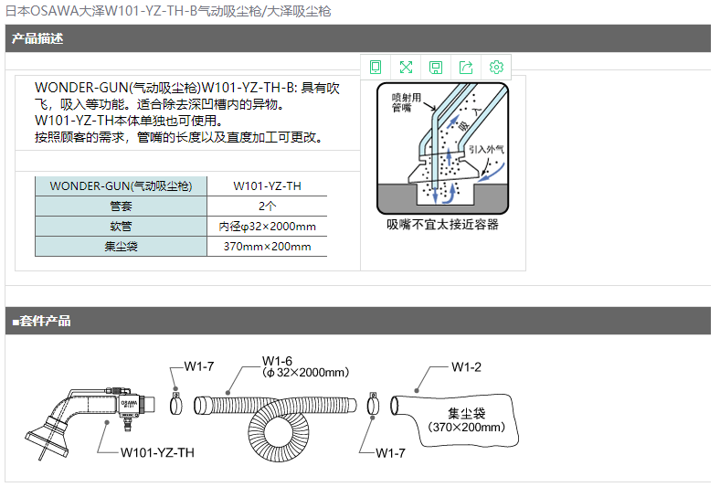 > 日本OSAWA大泽W101-YZ-TH-B气动吸尘枪