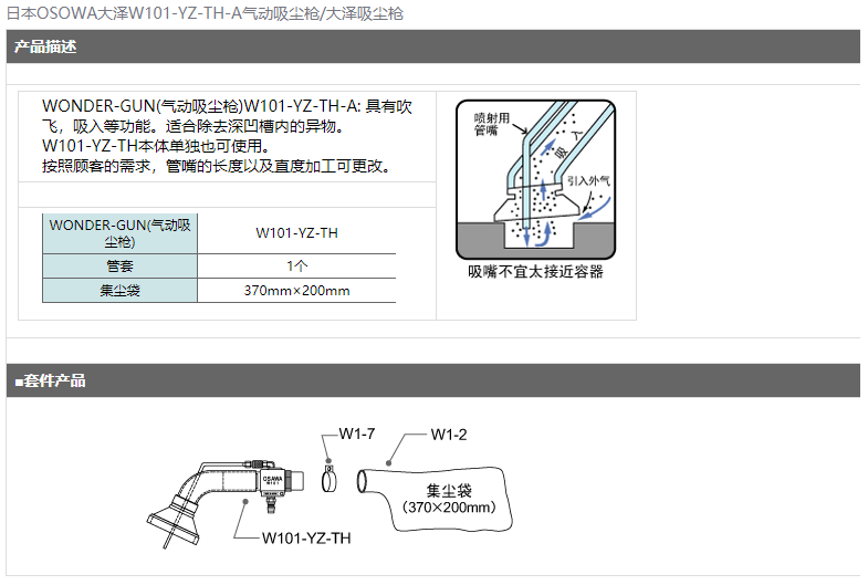 > 日本OSAWA大泽W101-YZ-TH-A气动吸尘枪
