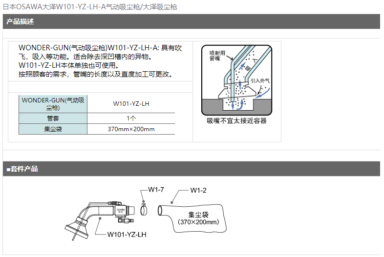 > 日本OSAWA大泽W101-YZ-LH-A气动吸尘枪