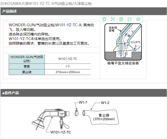 > 日本OSAWA大泽W101-YZ-TC-A气动吸尘枪