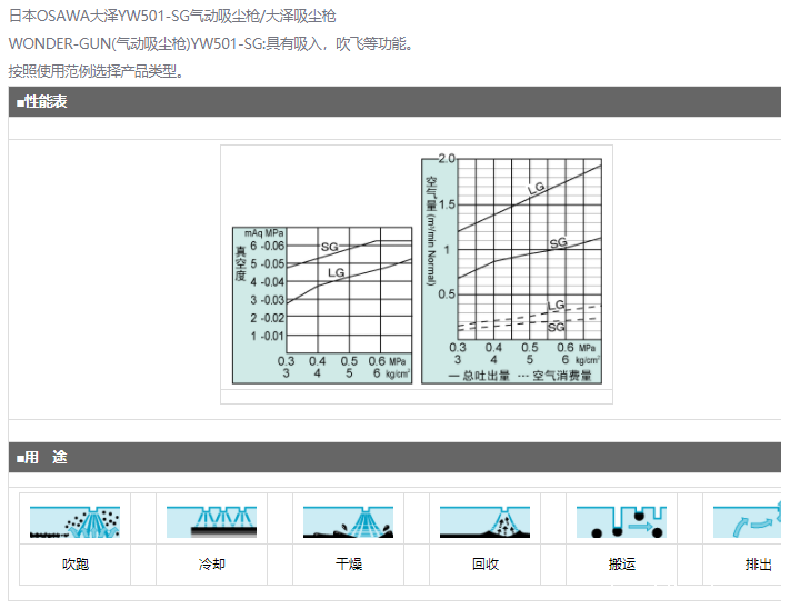 日本OSAWA大泽YW501-SG气动吸尘枪