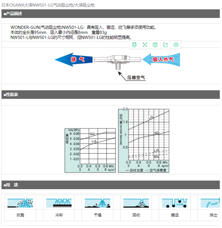 > 日本OSAWA大泽NW501-LG气动吸尘枪
