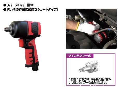 产品简介: 高科技树脂机身的轻巧型号。 汽车发动机拆卸维修。普通乘用车轮胎的拆卸工作。自行车维修工作。