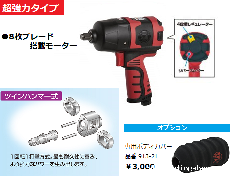 产品简介: 新设计! 使用8叶片电机时,转矩上升有所不同! 超大型气动扳手“ SI-1490 ULTRA”和消音器“ SI-1490(S)ULTRA”的继任者。 转子叶片从6个增加到8个,通过平稳的启动和旋转,以及达到最大扭矩的速度,提高了工作效率! 短冲击型,目前很流行,可以在狭窄的地方使用,但是在某些情况下,您可能会对启动感到不满意,但是您可以将这种冲击用于正常工作,而将短冲击扳手用于狭窄的地方我认为您可以在任何地方有效地工作。