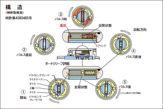 安全阀改变旁路的面积,以使脉冲中产生的油压从高压部分释放到低压部分,并根据目标扭矩调整扭矩和吹气。在传统产品中,该旁路部件的面积由终目标扭矩下的适当调整位置确定,因此在拧紧期间无法更改。根据拧紧过程,将旁通区域从高压部分更改为未改变的低压部分的机构,已实现了比常规产品更理想的拧紧,该常规产品用于使用脉冲工具拧紧。与使用脉冲溢流阀之前一样,调整终目标扭矩。