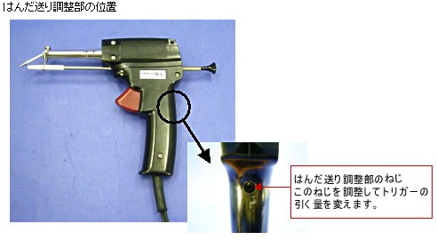 | 在小约3mm至约8mm之间可调。 拧紧或松开焊料供给调节单元的螺丝,以调节要送出的焊料量。 | ||