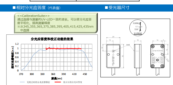 产品简介: ORC光量计LED曝光机用UV-LED01/UV-LED-CS01 对应主流的大功率UV-LED 广泛对应UVA频带的各种UV-LED闰平坦的分光响应特征