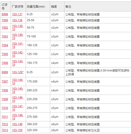 品 牌:三丰/Mitutoyo