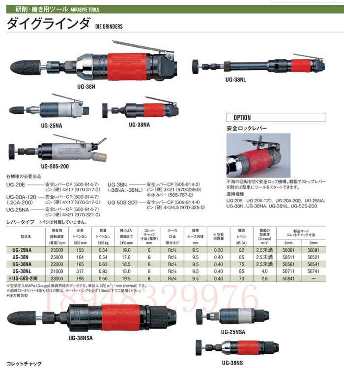 产品简介: 日本瓜生URYU气动打磨砂轮机UG-20A-200 UG-20A-120 多种型号选择 UG-38NS UG-25NA UG-38NA