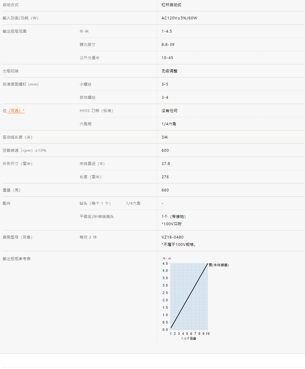 产品简介: 适合艰苦工作的无变压器螺丝刀它是一种带有内置控制器的无变压器类型。输入可以直接连接到交流电源插座。主体纤薄、轻便,并采用可减少疲劳的均衡设计。钻头插座适用于 HIOS H5 和对边 5mm (5HEX) 的六角钻头。不包括 VZ-1510、VZ-1510PS、VZ-4506、VZ-4506PS