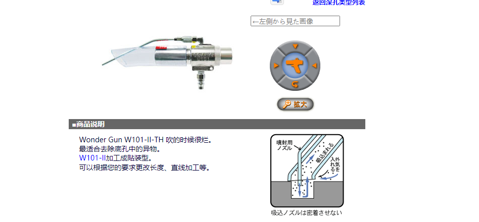 W101-II-TH 吹的时候很好。适合去除底孔中的异物。W101-II加工成贴装型。