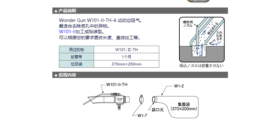 大泽osawa吸尘枪日本进口W101-II-A(不带软管接头)