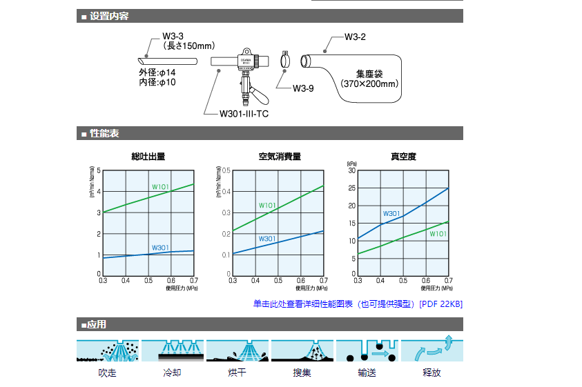 请用它来吹、吸、运。我们有多种产品可以满足您的需求,例如可以代替镊子使用的超紧凑型铅笔型,适合从细小区域收集灰尘,以及可以进行全面喷砂的鼓风型.尤其是螺旋喷射式产品,有效利用压缩空气作为动力源,枪内完全呈圆柱形,无障碍物,完全不用担心吸运过程中有物体堵塞内部。通过改变吸嘴的方向,可以在吹气和吸气之间切换,可用于输送、收集、冷却、排气等。产品系列的小内径为 2.8mm 至 75mm。如果您有任何其他要求,例如材料,请随时与我