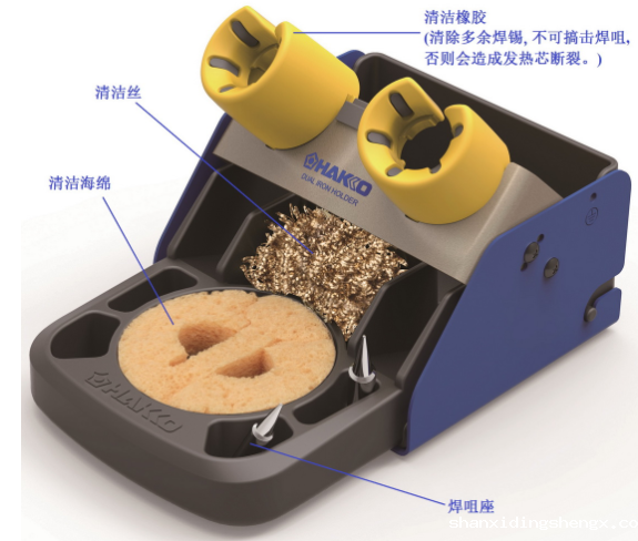 产品简介: hakko白光FX889拆消静电电焊台双插座设计, 可同时连接两种焊接工具。全新省电及独立开关设计。丰富种类的焊接工具选择。焊台操作简洁、焊铁架功能多样化。