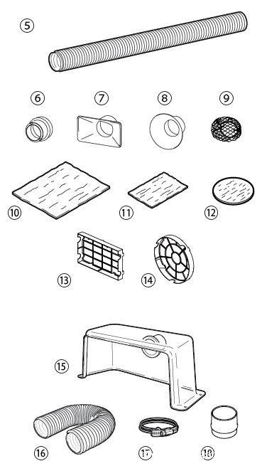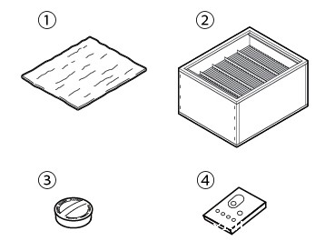 主机, 电源线, 摇控器, 圆盖, 前过滤片L (10块), 主过滤片L, 使用说明书