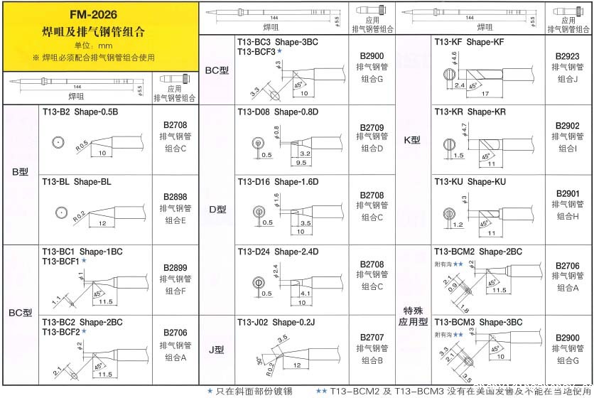 | FM2026-04氮气焊铁转换组件 (适用于FX950、FX951、FM203、FM204及FM206) | 包括FM2026-02、套筒组件、套筒护盖、休眠功能焊铁架、599B洁咀器、连接线及抗热垫片(不包括T13焊咀及排气钢管组合) |