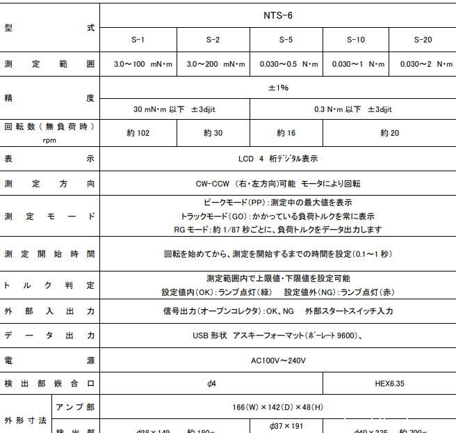 cedar思达S-5在具有旋转功能的设备和成品组装过程中测量旋转扭矩。当输出轴自转时,内置传感器捕捉旋转体上的负载波动。可以测量旋转物体(本身不旋转,没有动力)的旋转启动扭矩和旋转过程中的负载扭矩。扭力大小为很清楚的数字显示、故阅读简单,;可选择Ibf. in/kgf. cm/N. m三种测量单位;能保持值扭力,故可以为工具设定的扭力;正/反向测量,反向力用负数表示,方便记录;结构部分简单、坚固、设计原理科学;带RS232接口,可用于数据的记录和打印( 选件);携带方便、精小、使用可充电电池供电;