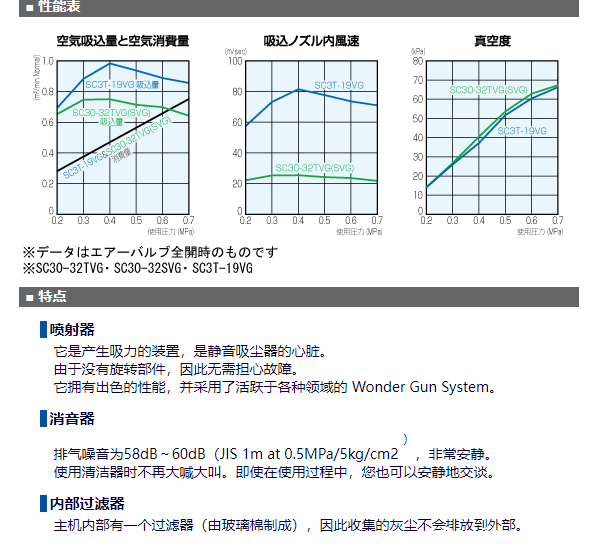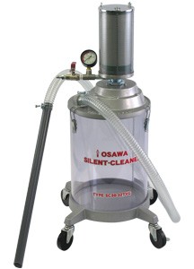 Silent Cleaner SC30-32TVG可以吸入压缩空气(compressor air)作为驱动源。强力收集传统工业清洁剂无法充分收集的高粘度油脂、污泥等。非常适合任何工作场所。2级结构/多重过滤器!长时间连续使用OK!吸力强、降噪的吸尘器。重量:13kg 高度:890mm宽度:450mm吸嘴:外径:32mm 长度:600mm吸管:内径:32mm,长度:2000mm25升带脚轮透明罐。