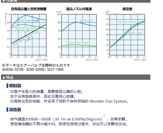 Silent Cleaner SC3T-19VG 可以吸入压缩空气(compressor air)作为驱动源。强力收集传统工业清洁剂无法充分收集的高粘度油脂、污泥等。非常适合任何工作场所。长时间连续使用OK!吸力强、降噪的吸尘器。重量:2kg 高度:340mm 宽度:160mm