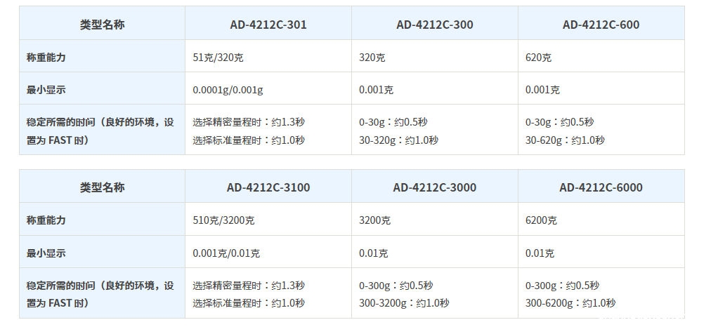 日本进口AND艾安得重传感器AD-4212C用于二次电池、电子零件、医药品、抗蚀剂油墨、涂层剂和油的生产过程电磁传感器Electromagnetic digital load cell)® 采用EM-DLC方式,精度高、速度快、结构紧凑。配备C-SHS(Compact-Super Hybrid Sensor),0.5秒高速响应,每秒50次高速输出(选择9600以上波特率时)。称重数据直接传输到平板电脑、PLC、PC等。标准附件电缆10m59 mm 宽的紧凑型称重装置,可自由布局防尘/防水称重装置IP65将过氧化氢原液(34%浓度)滴在测量单元外壳的涂层表面100小时后,确认涂层(环氧树脂底涂层+丙烯酸涂层)没有翘起或剥落。3000万次只需5mg!EM-DLC AD-4212C-300(重量320g,小显示1mg)在一年多的时间内完成了3000万次的耐久性测试。终量程偏差值仅为 5mg(200.005g 以 200g 参考重量显示),相当于 5 个刻度间隔。