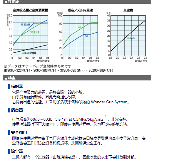 Silent Cleaner SC60-32SW/F 是在SC60-32S中加入了滤尘器的产品。可以使用压缩空气压缩机空气)作为驱动源进行抽吸。强力收集谷物、小砾石、金属碎片等,传统工业清洁剂无法有效收集这些物质。非常适合任何工作场所。2级结构/多重过滤器!长时间连续使用OK!