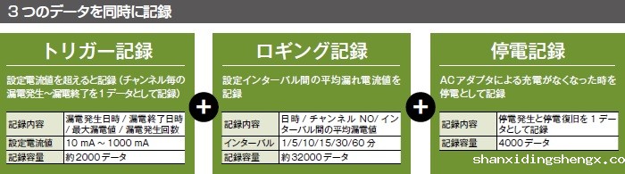 当AC适配器电量耗尽时记录的停电记录各种电流传感器阵容(选项) 20毫秒的高速采样无输出的报警输出功能-超过设定电流值时的电压触点记录数据可以CSV格式保存在主机内部,可以用附带的软件在PC上显示,触发记录数据也可以在主机显示器上确认 ・兼容操作系统:Windows Vista/7/8/8.1/10 ![]() |