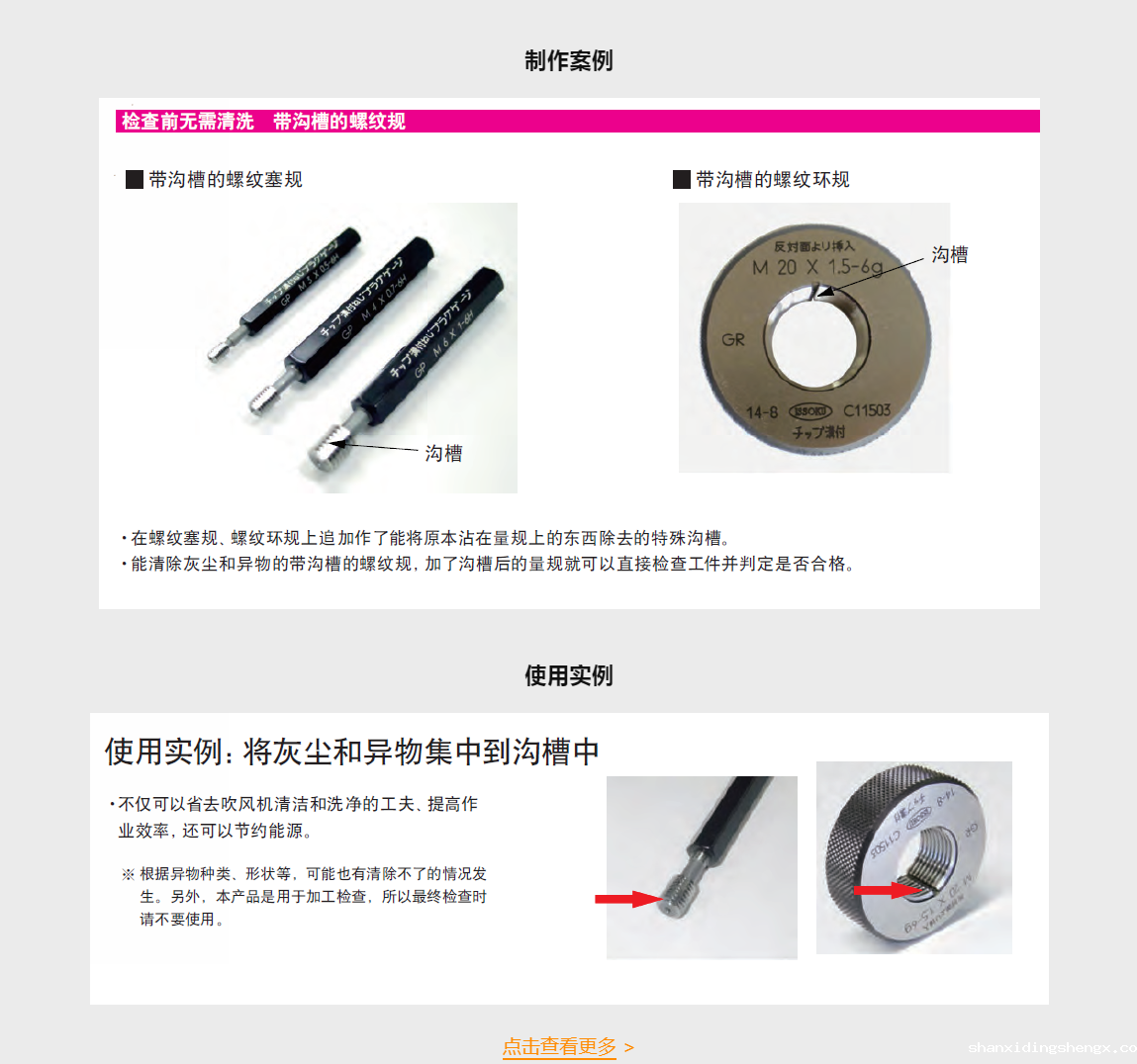在加工现场,用量规进行检查前要清洗零件,耗费人力、时间!在加工现场,切割螺纹时,灰尘和异物会沾到零件上。异物如果进到量规和被检零件中间,可能会弄错通、止的判定结果,而且还有可能会弄伤量规和部品。用量规检查前,如不用风机清洁或者洗净就直接检查的话就无法得出正确的判定结果。