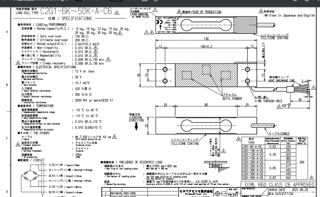 日本NMB称重传感器,日本Minebea称重传感器日本美蓓亚称重传感器产品型号:C2G1-10K-A称重传感器产品价格:在线询价产品特点:单点式称重传感器合金钢材质防护等级IP64精度高、稳定性好安装方便,简单量程可选:58.84 N{6 kgf}~490.3 N{50 kgf}应用于:计价秤、电子台秤等称重设备