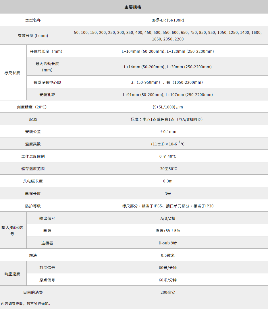 体积小巧,节省安装空间精度:(5+5L/1000)µm(L为有效长度)分辨率:0.5µm结构简单,寿命长
