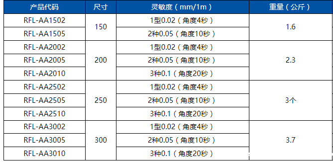 AA 规格是超越JIS 标准的内部操作标准,整个刻度范围的指示精度(整个范围内的精度)为±0.2 刻度。当水平仪的底平面放在准确的水平位置时,水准器内的气泡正好在中间位置(即水平位置)。在水准器玻璃管内气泡两端刻线为零线的两边,刻有不少8格的刻度,刻线间距为2mm,当水平仪的底面与水平位置有微小的差别时,也就是水平仪底平面的两端有高低时,水准器内气泡由于地心引力的作用总是往水准器的一侧移动,这就是水平仪的使用原理。两端高低相差不多时,气泡移动也不多,两端高低相差较大时,气泡移动也较大,在水准器的刻度上就可读出两端高低的差值。