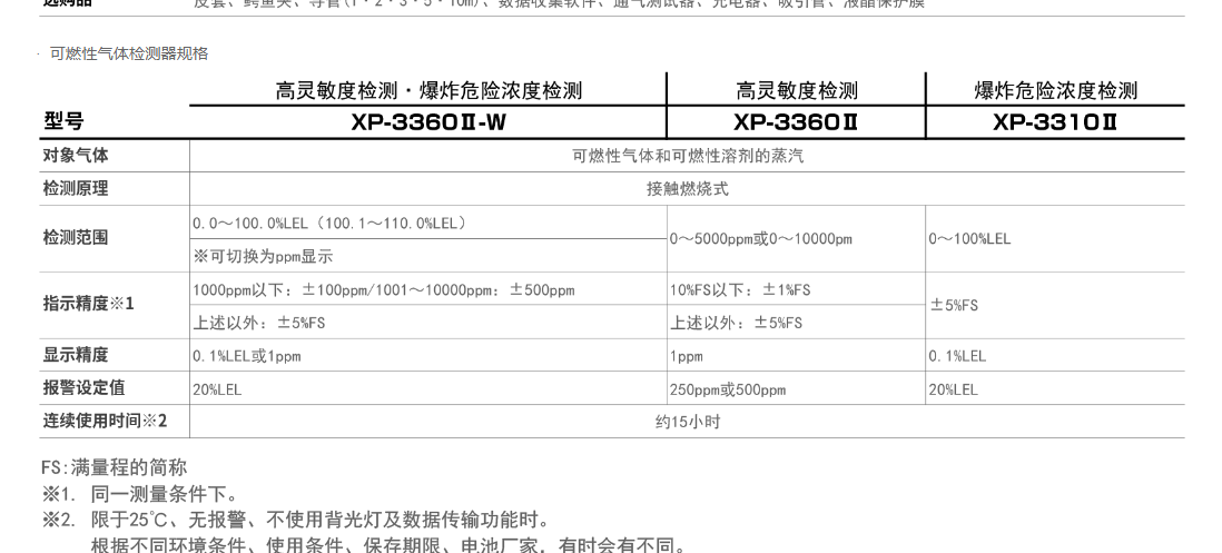 3.用于爆炸危险浓度检测的XP-3310Ⅱ