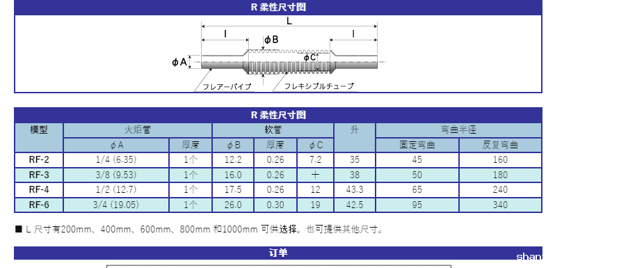 优异的柔韧性,吸收传递到管道的振动管端型可直接连接接头等。材质为SUS304(标准品),也可选择SUS316,工作压力0.5MPa,优异的耐热性、耐腐蚀性和耐化学性。R弹性