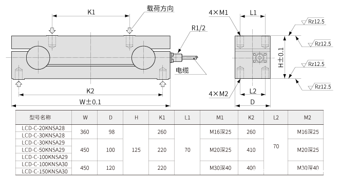 因为直接承受载荷,所以装置构造等引起的载荷损失极少额定容量:20~150kN长度:360~450mm(相同容量的不同型号有差异)非线性:±0.2%RO或以内