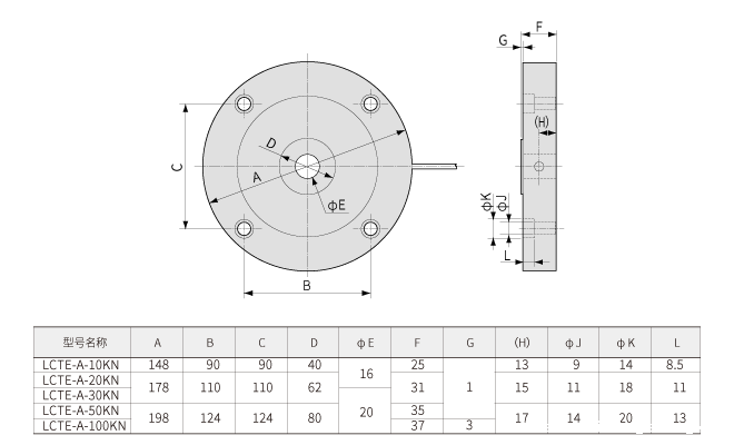 额定容量:5~100kN长度:175mm(5~30kN), 200mm(50, 100kN)非线性:±0.05%RO或以内