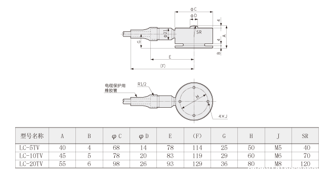 上海共和电业LC-5TV 50kN 100kN小型压缩式载荷传感器