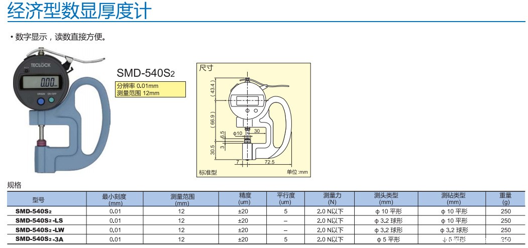 > TECLOCK得乐数显厚度计便携式电子测厚仪SMD-540S2