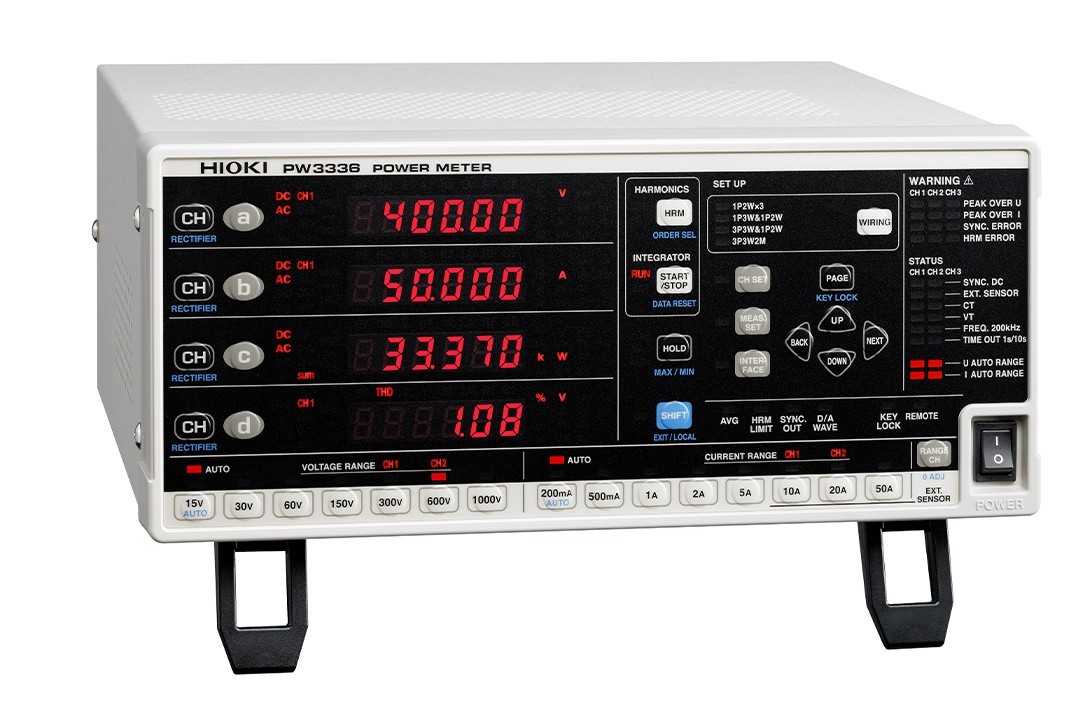 支持支持2ch输入,DC、可测单相2线~三相3线用于马达、变频器、功率调节器、电源等的开发和生产高基本精度:±0.15%宽频带:DC,0.1Hz~100kHz 直接输入方式下可测65A的大电流标配谐波测量:符合IEC61000-4-7变压器/马达的无负载试验中,即便是低功率因数也能实现高精度测量 支持AC 5000A输入,带外部电流传感器输入端口多可同时控制8台仪器