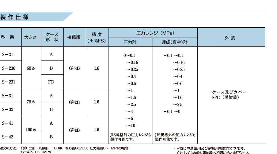 产品简介: 该压力表是根据 JIS B 7505-1 波登管压力表制造的,用于恒定压力。 特征体积小。价格低廉。